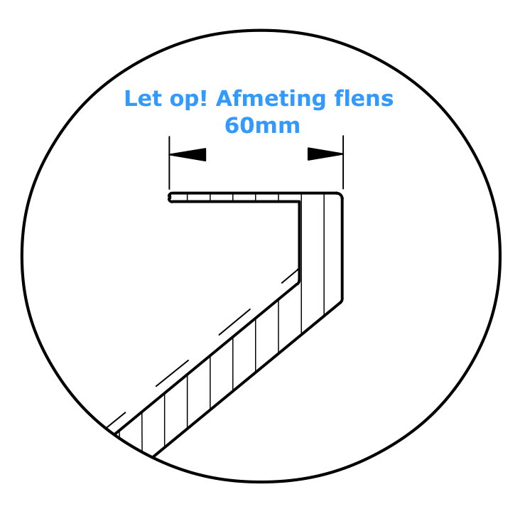 Als er een driehoekje van 6 x 3 cm rondom overal onder de flens past, dan is er geen adapter nodig. Ben je niet zeker? Wij sturen desgewenst kosteloos een houten driehoekje toe.