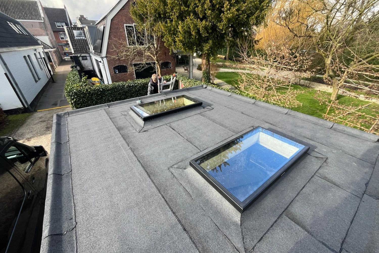 Plat dakraam met isolatieglas voor montage op een bouwkundige opstand (opstand zelf is niet inbegrepen). Bekijk de produkttekening.