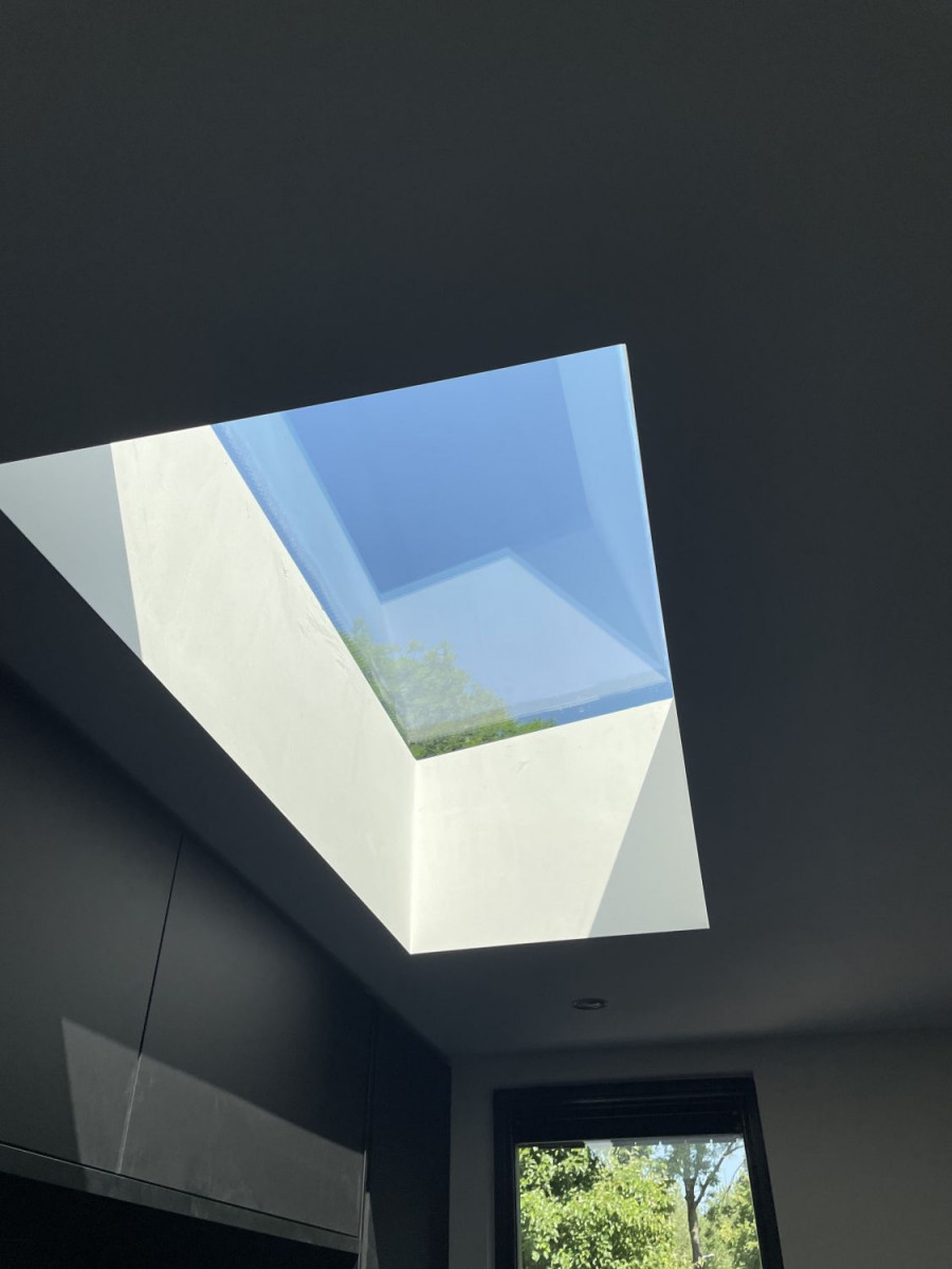 Dan is het ook logisch om daar een goed geisoleerd daklicht op te plaatsen. En dus geen enkel-glas. Een perfecte situatie voor een ClearSky.