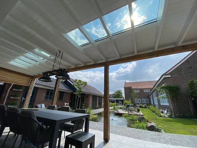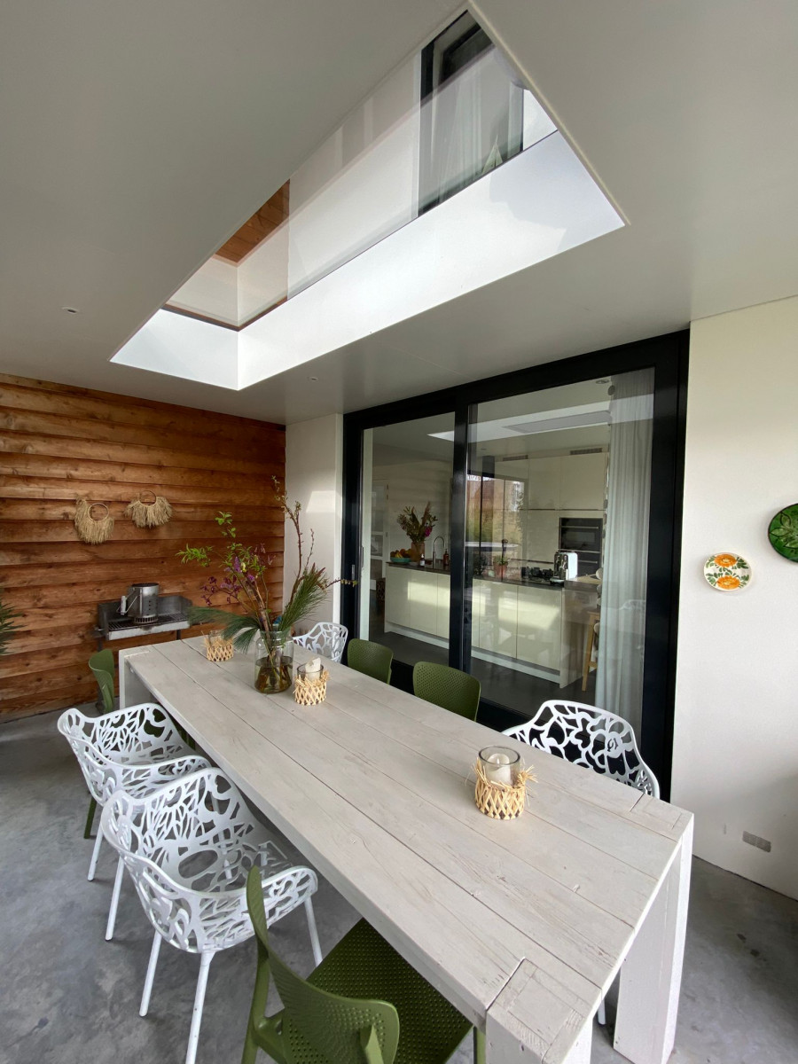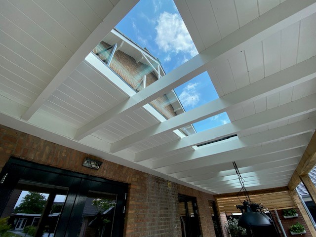 Bij de bouw van een overkapping in Roosendaal werd besloten om 2 stuks platdakramen van daklichtshop toe te passen. Eén van 200x100 cm. en één van 300x100 cm. Het resultaat is zonder meer geweldig te noemen.