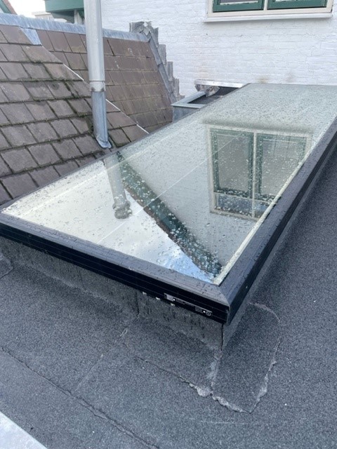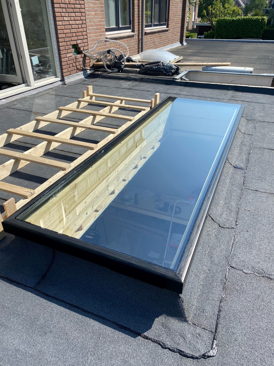 Geleverd werd: 1 st. platdakraam ClearSky HR++ 2400 x 1000 mm.