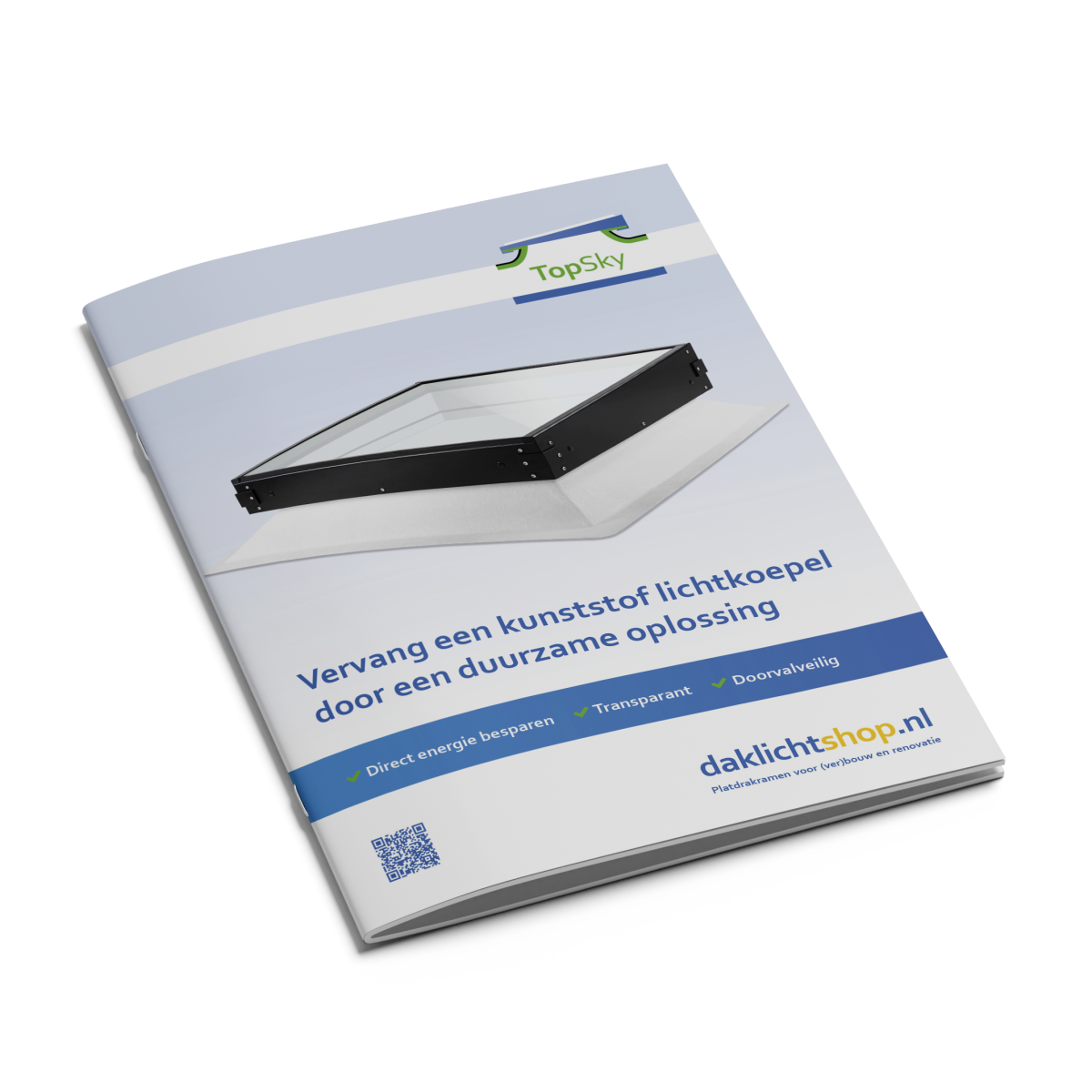 Zoek je naar een oplossing voor het vervangen van je oude lichtkoepel? Maar zonder dat het ingrijpend of onbetaalbaar wordt? Welkom bij Daklichtshop, dé specialist voor daglichtoplossingen op platte daken. Met ons renovatie-product TopSky vervang je eenvoudig de kunststof bol van je bestaande lichtkoepel door een hoogwaardig deel met isolatieglas. De bestaande opstand en de dakbedekking blijven daarbij intact.