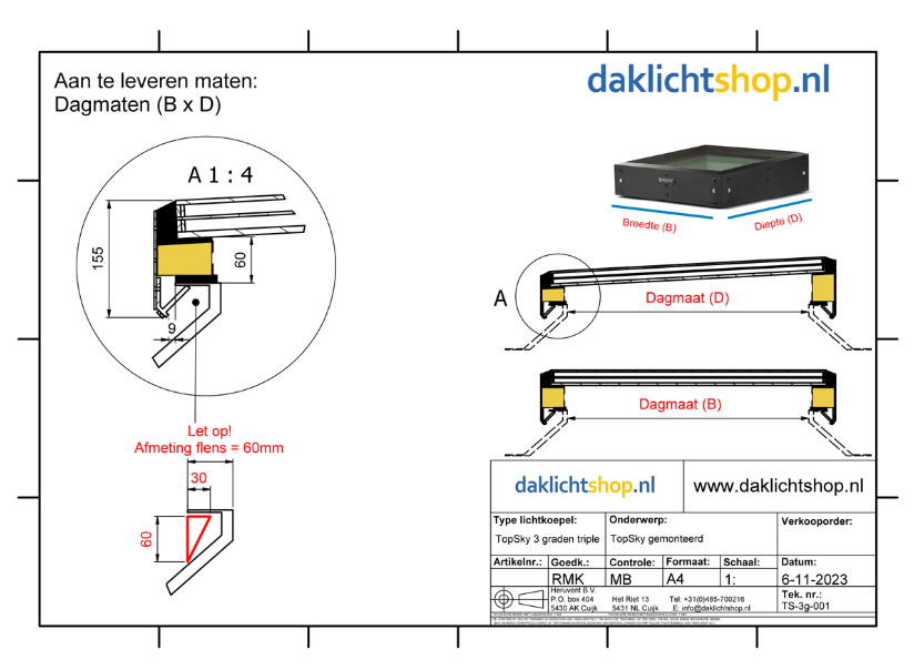 Let op: de eenvoudige plaatsing veronderstelt wel dat de huidige situatie geschikt is voor de TopSky en dat de juiste (dag)maat is besteld. Logisch, want het is een renovatie oplossing. Oftwel: je gaat iets nieuws (TopSky) op iets bestaands (huidige opstand) plaatsen. Lees daarom eerst het blokje: "controleer de bestaande opstand".